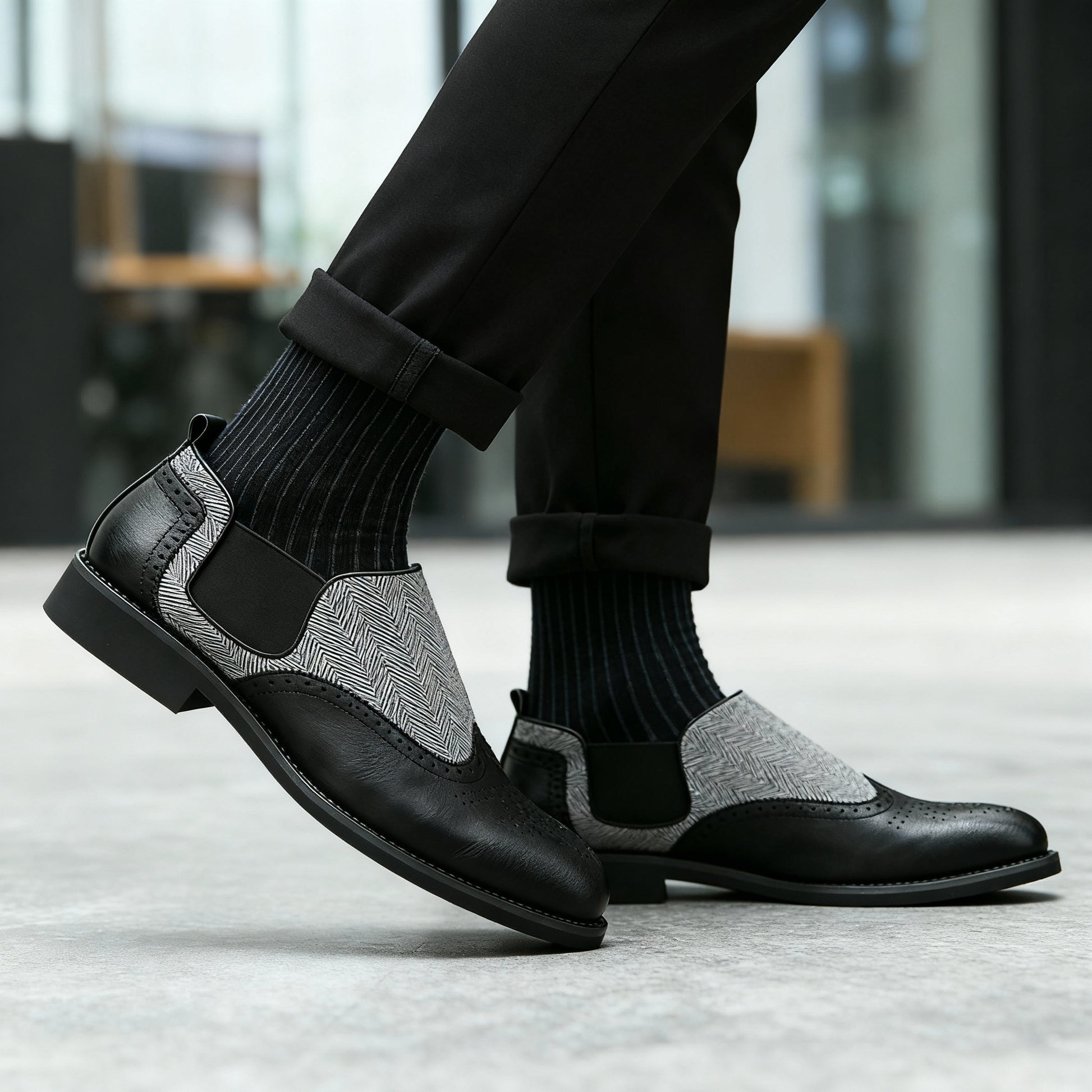 The Whitmore blends classic English brogue detailing with a tonal fabric vamp for contrast and breathability. Cut from hand-burnished full-grain leather with perforated wingtip accents that develop depth over time.