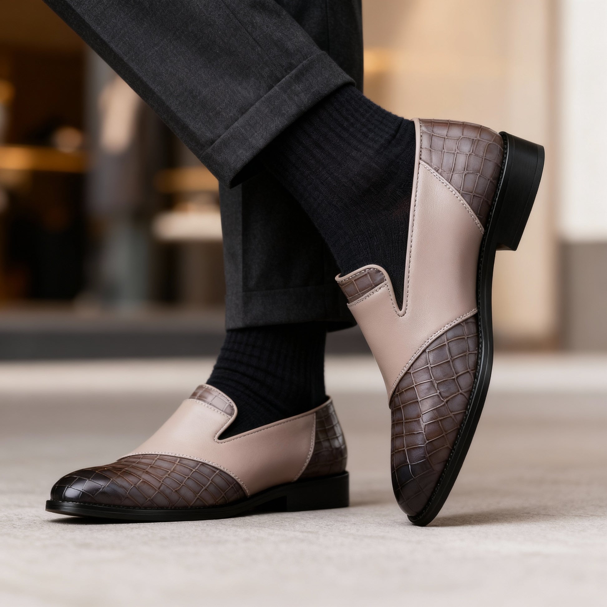 The low-cut profile and tapered shape give it a tailored feel under trousers, while a cushioned insole softens every step. Finished with stitched detailing and a hand-burnished tone that deepens with wear
